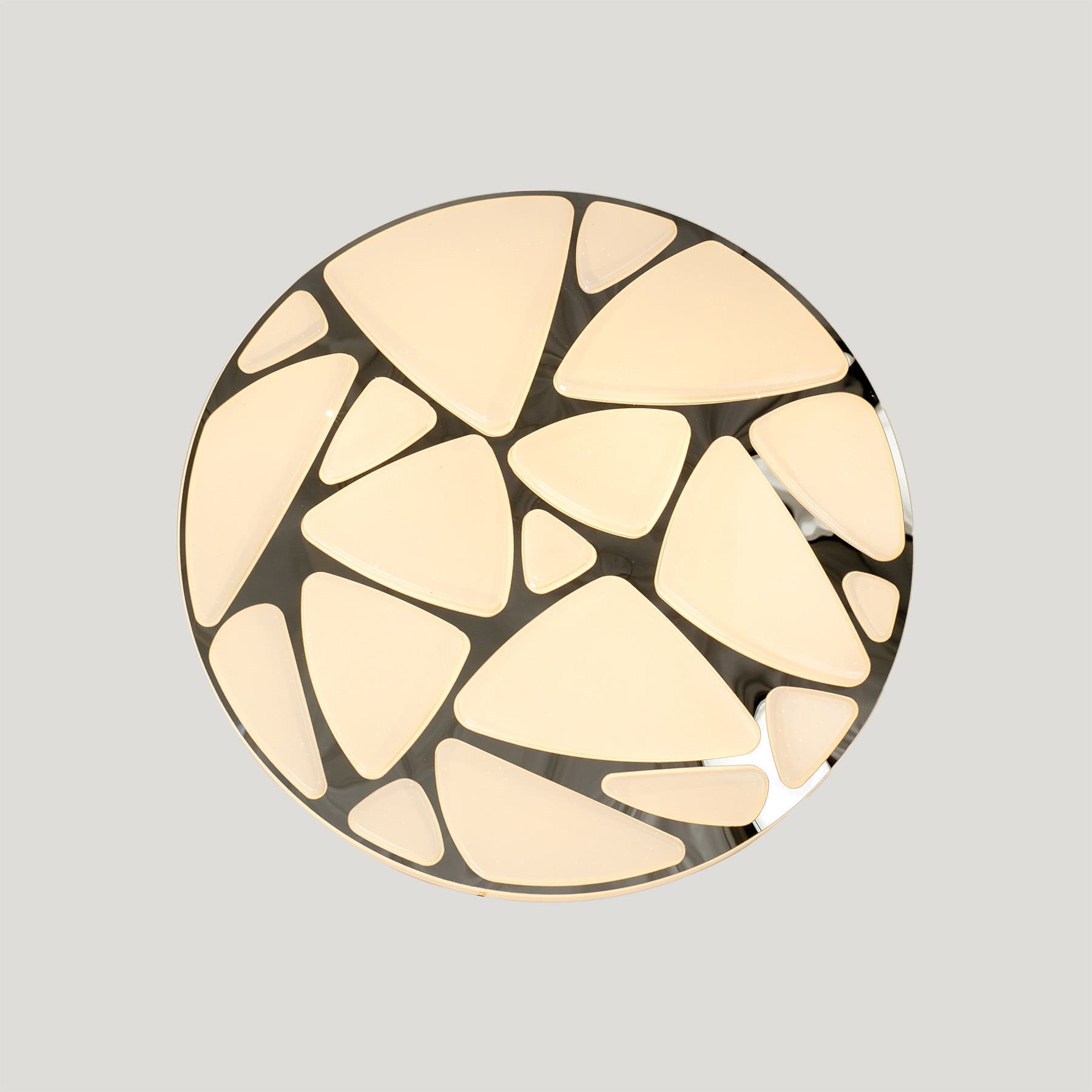 طبق ليد بشكل دائري انيق يتكون من قطع هندسيه غير منتظمه يمنح اضاءه ناعمه وجو دافي
