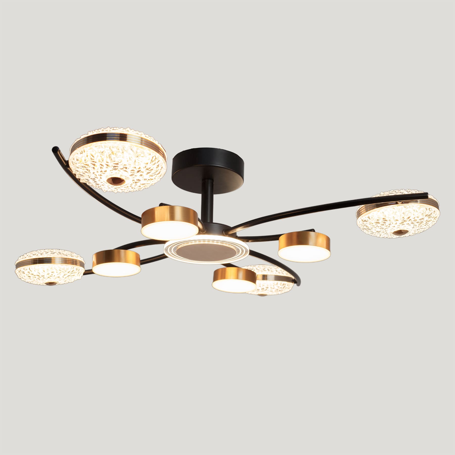 نجفه مودرن بتصميم فاخر وعصري ذو ازرع منحنيه تنتهي بوحده اضاءه دائريه مسطحه